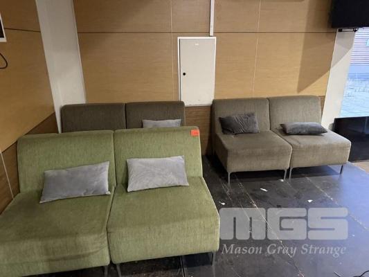 6 x MODULAR LOUNGE SECTIONS, 2 x GREEN & 4 x GREY