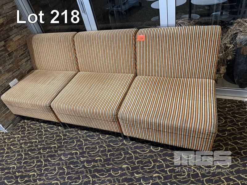 3 x MODULAR LOUNGE SECTIONS, STRIPED FABRIC UPHOLSTERED