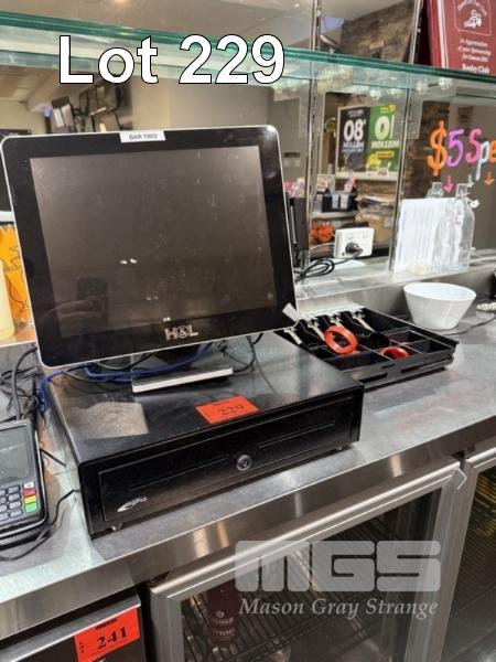 POS REGISTER, H&L MOD: HL-44647 TOUCH SCREEN SPU, 15" TYPE: J1900 2GHZ, 4GB RAM, 128GB HDD WITH CASH DRAWER & UPS