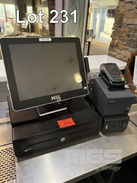 POS REGISTER, H&L MOD: HL-44647 TOUCH SCREEN SPU, 15" TYPE: J1900 2GHZ, 4GB RAM, 128GB HDD WITH CASH DRAWER, UPS & EPSON DOCKET PRINTER