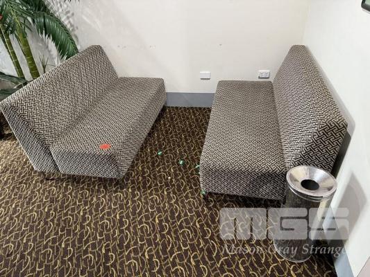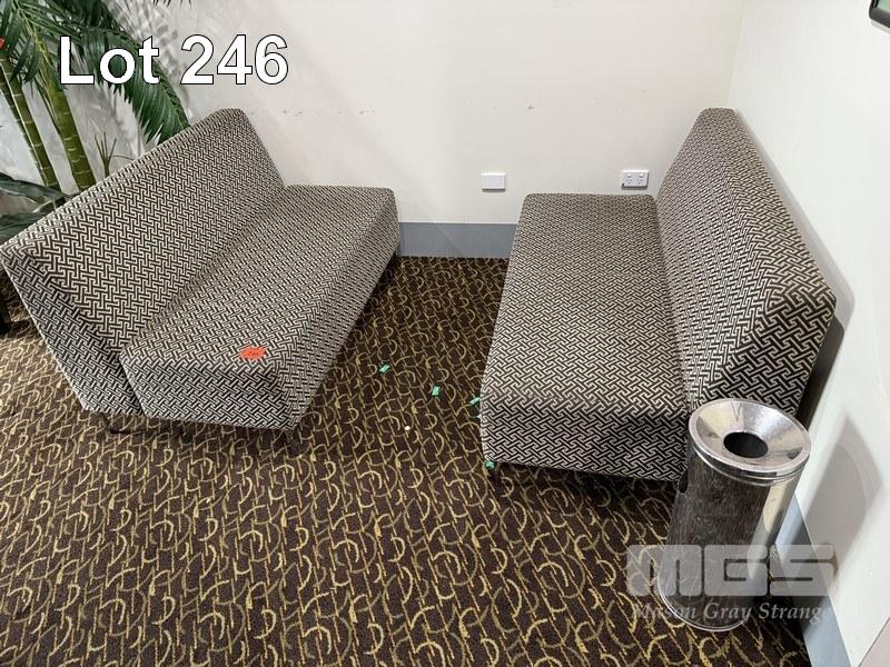 PAIR MODULAR RECEPTION LOUNGES, AZTEC PATTERNED FABRIC