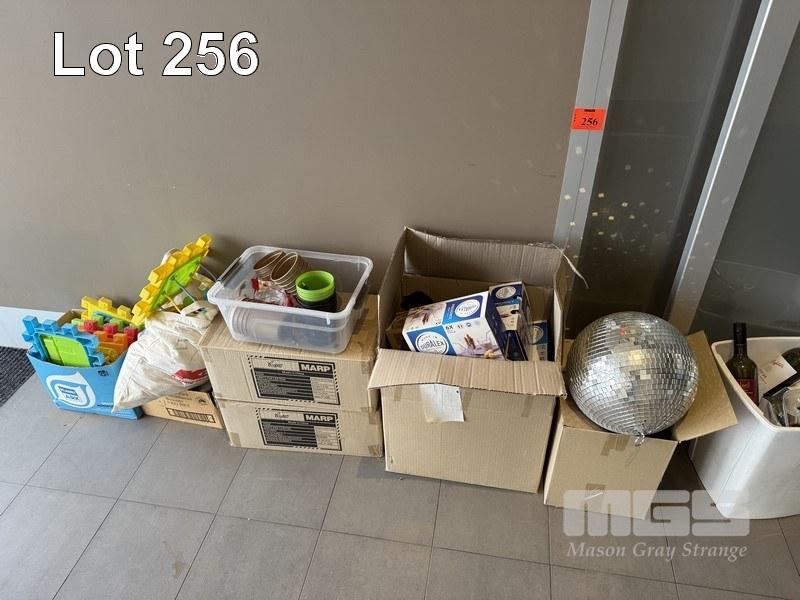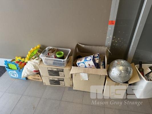 MIRROR BALL, GLASSWARE, 19 x COOPER SPORTS BAGS, TOYS, ETC
