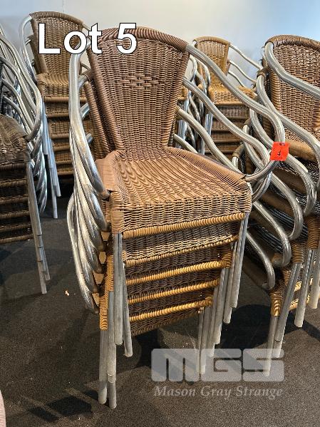 12 x WICKER CAFE CHAIRS, ALLOY FRAME, STACKABLE