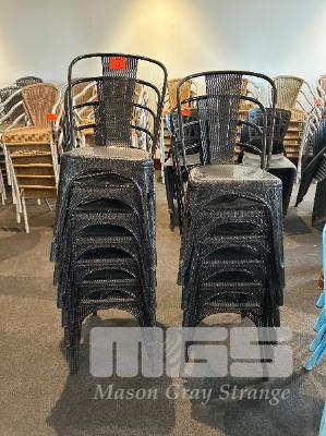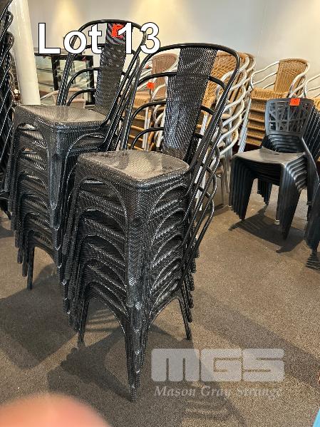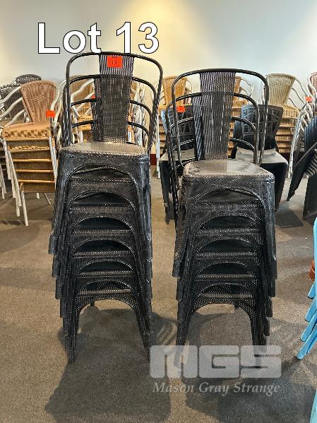 13 x BLACK STEEL CHAIRS, STACKABLE, PERFERATED