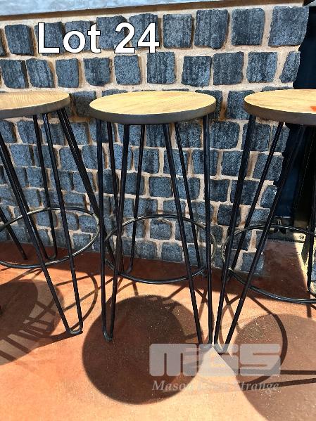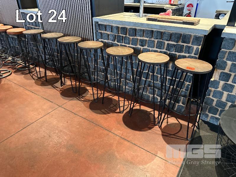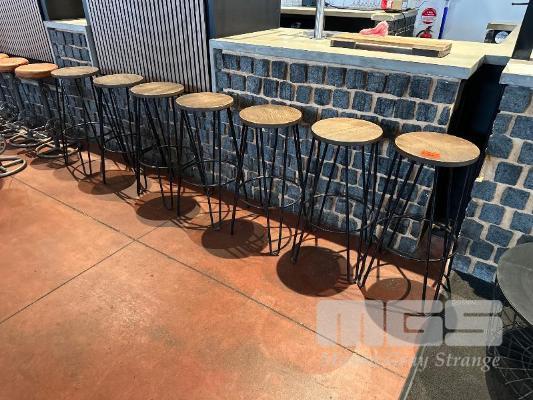 7 x BAR STOOLS, TIMBER TOP, STEEL FRAME, 760mm (H)