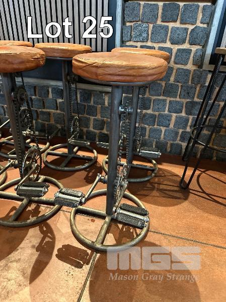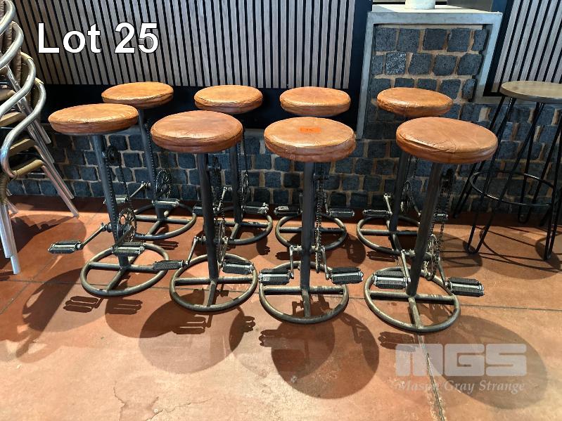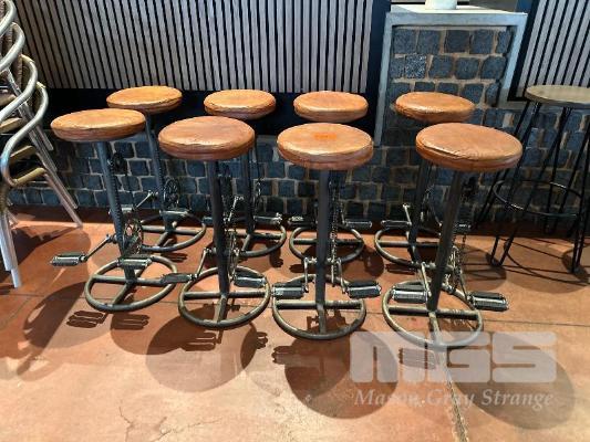 8 x BICYCLE BAR STOOLS, LEATHER TOPS, 750mm (H)
