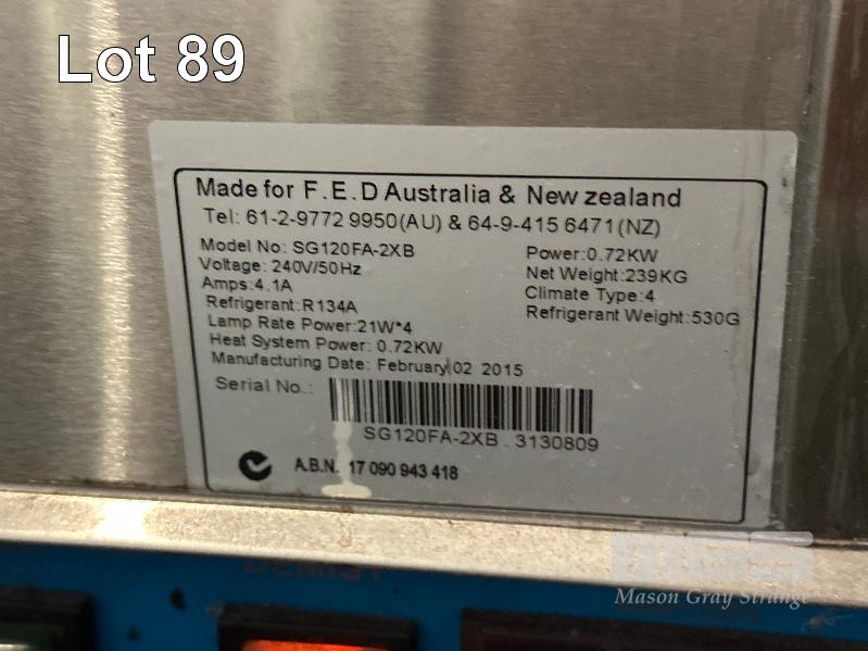 FED REFRIGERTED DISPLAY, MOD: SG120FA-2XB, DOM: 2015, 1175 x 690 x 1245mm 240v 10amp