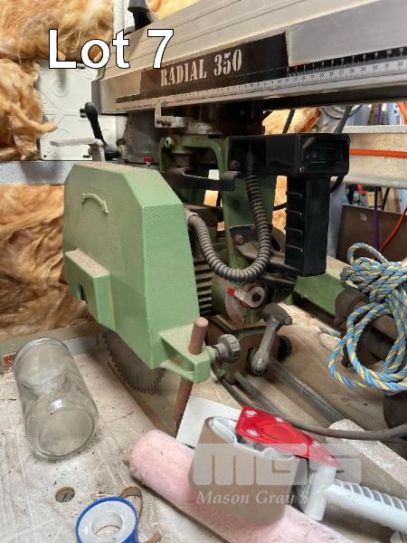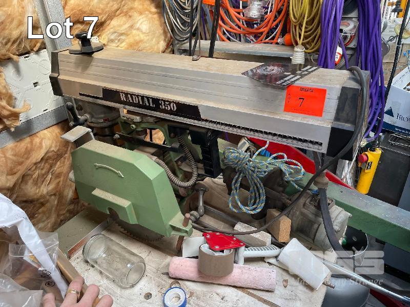 RADIAL ARM SAW, 2hp, 240V 10amp, ON STEEL FRAME