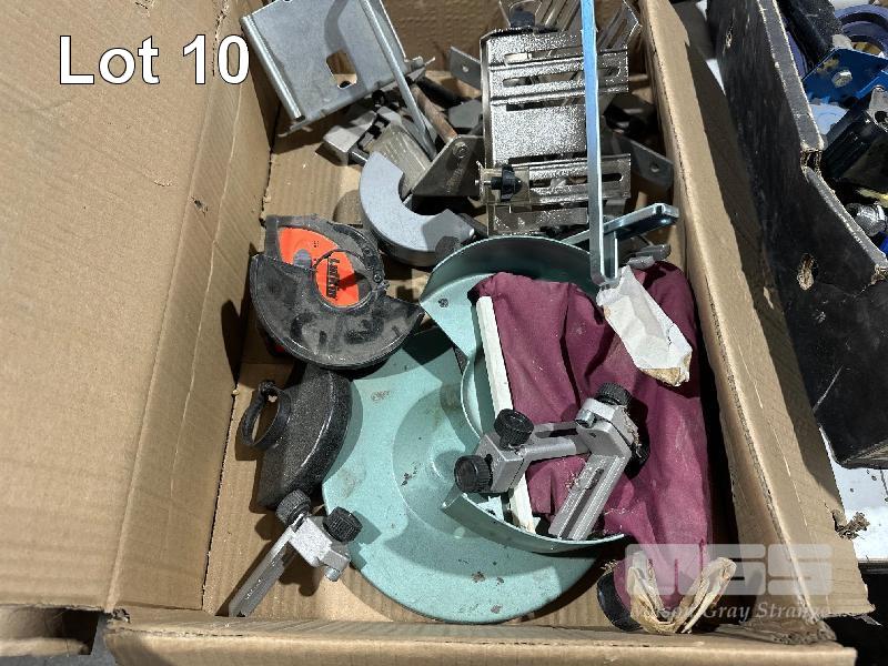 ASSORTED TOOL GUARDS, LEVELS, LIGHTS, CHAIN & CASES