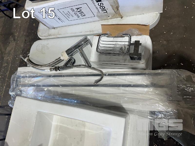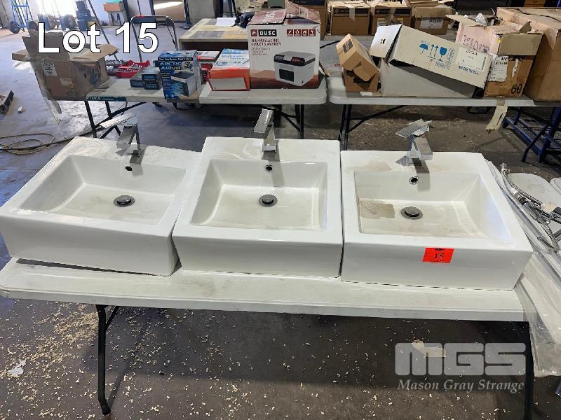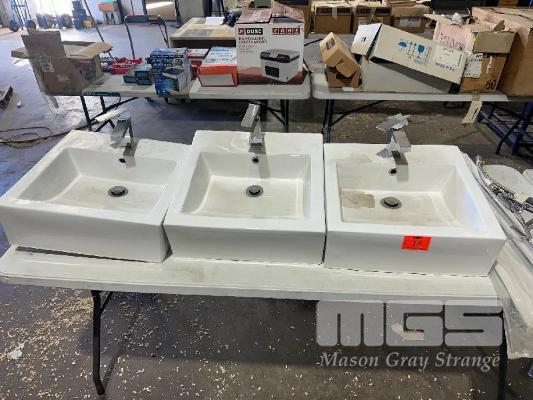 3 RAISED SINK UNITS WITH TAPS & BATHROOM HARDWARE
