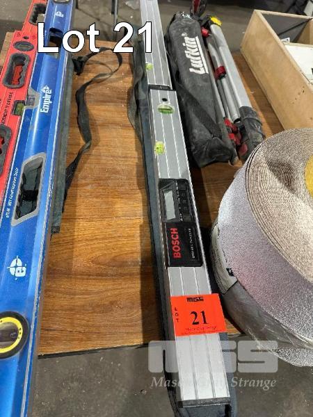 2 x DIGITAL SPIRIT LEVELS, BOSCH, 1200-600mm & LUFKIN TRIPODS