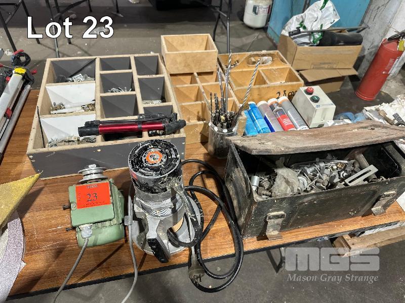 240V ELECTRIC MOTOR, B&D ROUTER, HARDWARE, LIMIT SWITCH & SEALANTS