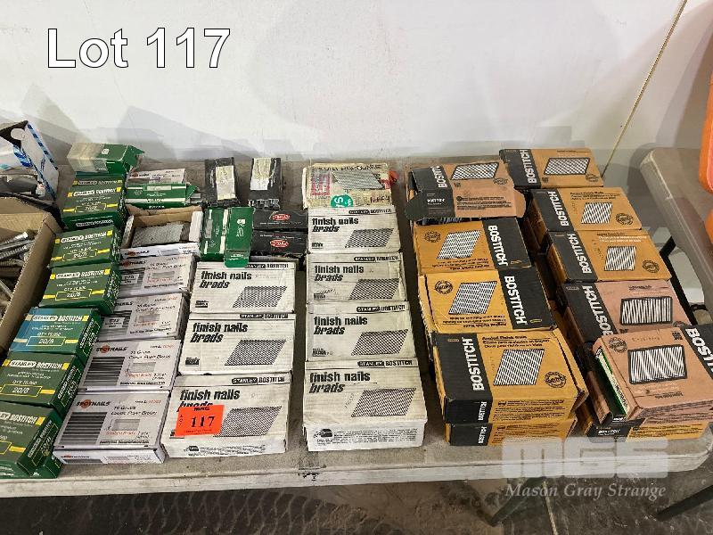 TABLE OF STANLEY & BOSTITCH BRADS, NAILS, ETC WITH SCREW/HARDWARE