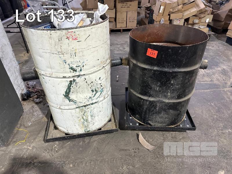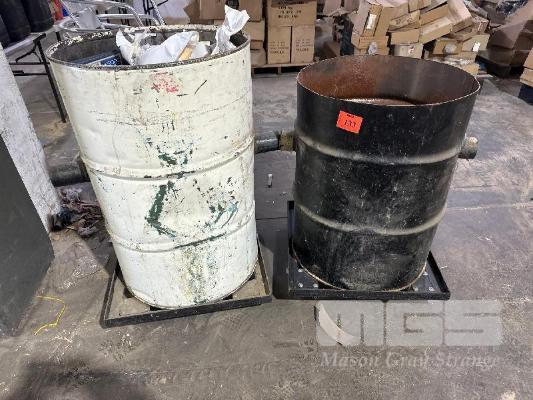 2 x 205 LITRE BINS ON TROLLEYS, WITH FLIP TUBES