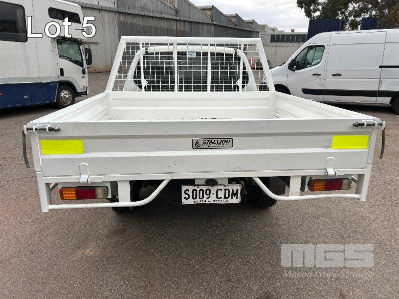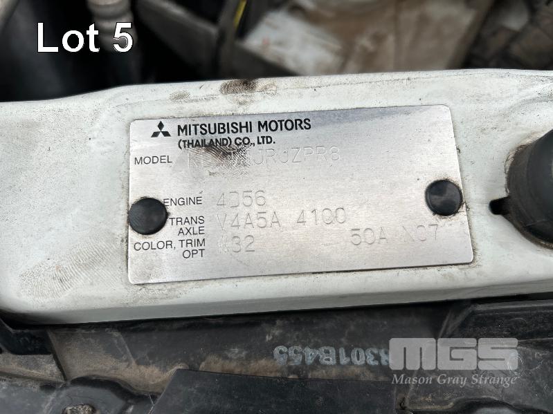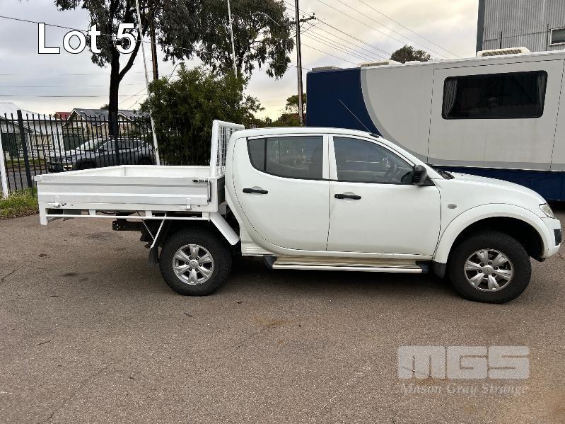 2014 MITSUBISHI TRITON KA/KB GLX DUAL CAB TRAY TOP 4x4 REG: S009 CDM VIN: MMAJRKB40FD013065 ODO: 152,694kms SHOWING 4 CYLINDER TURBO DIESEL, AUTOMATIC TRANSMISSION, WHITE DUCO, 4 DOORS, 5 SEAT, 4x4 ABS, AIR BAG, AIR CON, CARGO BARRIER, CD PLAYER, CENTRAL LOCKING, CRUISE CONTROL, POWER STEERING, POWER WINDOWS, SIDE STEP, STEEL TRAY, KEY #6 (WITH 1 KEY/S, WITH OWNER'S MANUAL, WITH SERVICE BOOKS) CONDITION: FRONT BUMPER - IMPACT DAMAGE