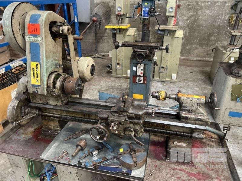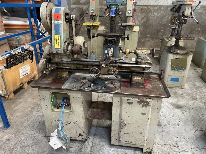 METAL WORKING LATHE, HERCUS MOD: CR BED LENGTH: 750mm BETWEEN CENTRES: 550mm SWING: 240mm FEED THROUGH: 20mm WITH 1 x 3 JAW CHUCK, 100mm & 4 JAW CHUCK, 150mm LIVE CENTRE, CHUCK & TOOL HOLDERS 415V