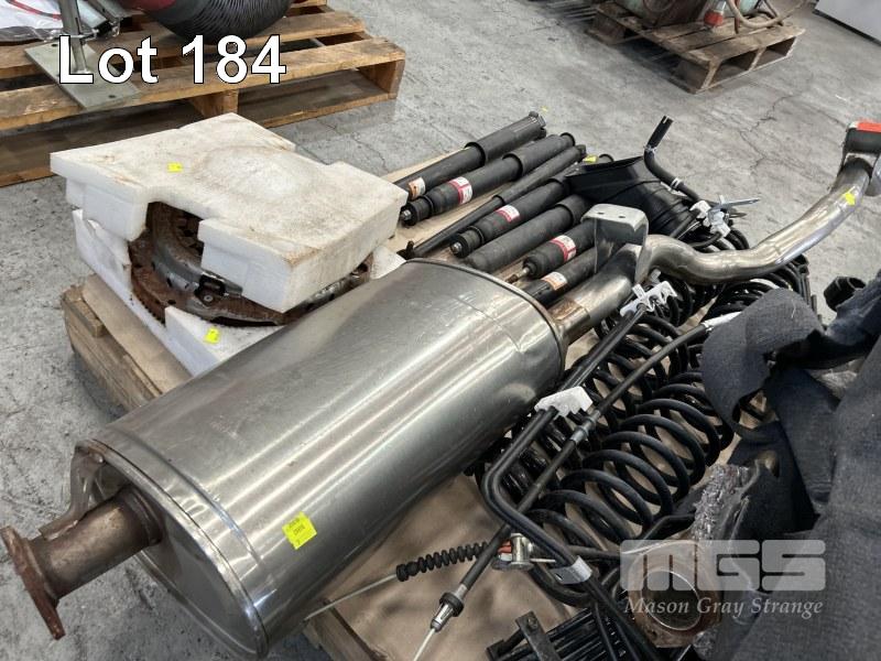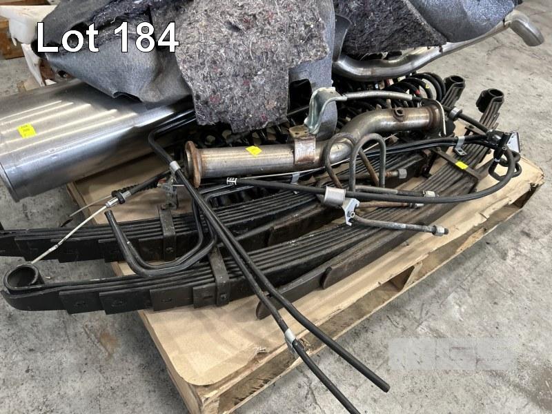 TOYOTA LANDCRUISER 79 SERIES DUAL CAB SUSPENSION & EXHAUST PARTS INCLUDING 8 x SHOCK ABSORBERS, 2 X LEAF SPRINGS, 4 X COIL SPRINGS, EXHAUST PIPES & MUFFLER, CABLES, INTERIOR CARPET & CLUTCH KIT 1 x PALLET