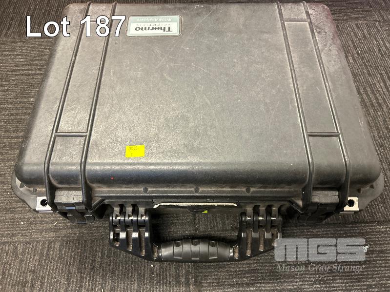 XRF ANALYSER, THERMO SCIENTIFIC, NITON MOD: XL3T9005 HAND HELD ANALYSER DOM: 2010 SUITED TO POSITIVE MATERIAL IDENTIFICATION MAINLY WITH STAINLESS STEEL & NICKEL ALLOYS 8 & 3mm FOCAL SPOTS, WITH MANUAL & SOFTWARE 2 x BATTERIES & CHARGER, CALIBRATION TEST ALLOY SAMPLE, INSTRUMENT & BATTERY HOLSTERS & PROTECTIVE ARMORED CARRY CASE PASSWORD PROTECTED P/N NO: 4321