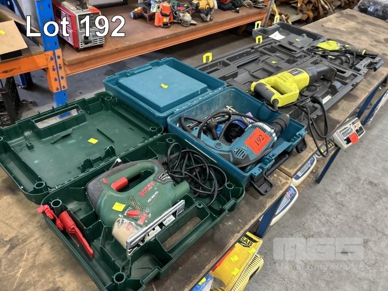 RYOBI HAMMER DRILL & RECIPROCATING SAW, BOSCH JIGSAW & MAKITA HAMMER DRILL, 240V