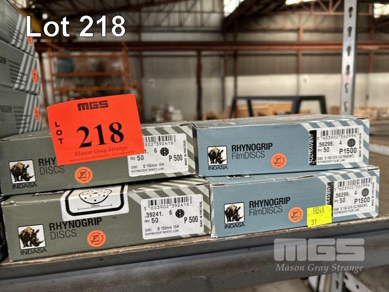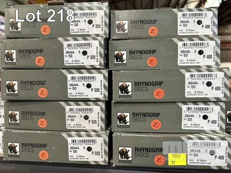 SANDING DISCS, INDASA, RHYNO GROUP, 150mm, 2 x BOXES, P150 2 x BOXES, P240, 5 x BOXES, P320, 5 x BOXES, P400, 2 x BOXES, P500 & 3 x BOXES, P1500 ALL 50/BOX 1 x SHELF