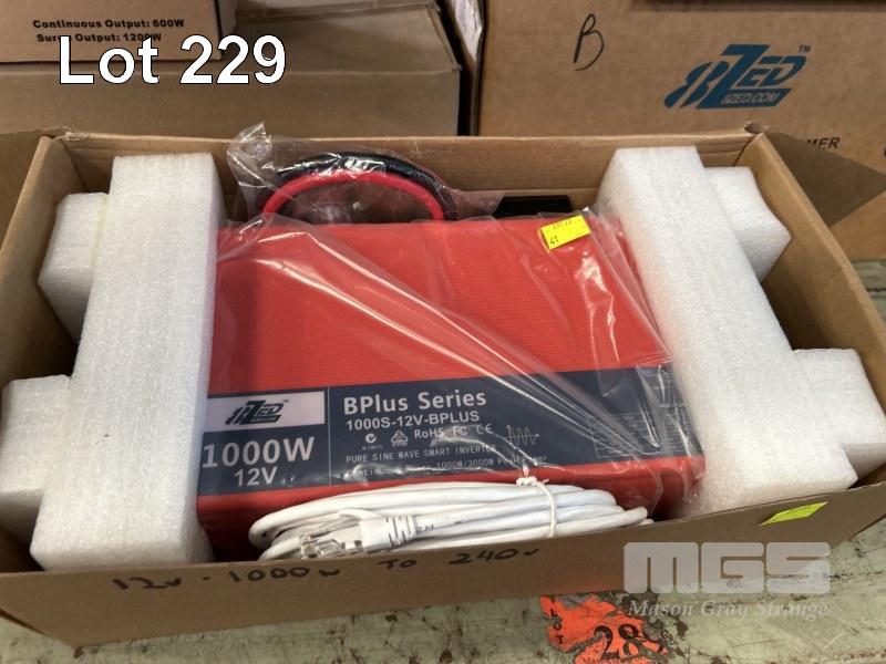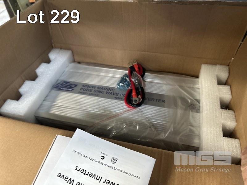 3 x POWER INVERTERS, 8 ZED, PURE SINE WAVE 4000w- 24V DC TO 240VAC, 1000w -12V DC TO 240VAC, 600w - 12V DC TO 120VAC, 3 x POWER TRANSFORMERS INCLUDING 5000w - 240V TO 120VAC, STEP DOWN 4000w - 120V TO 240VAC, STEP UP, 2000w - 120V TO 240VAC, STEP UP, 2 x 600w - 240V TO 120VAC, STEP DOWN, 4 x 100w - 240V TO 120VAC, STEP DOWN
