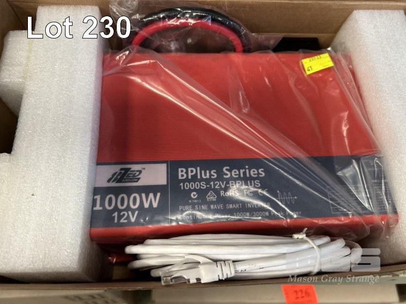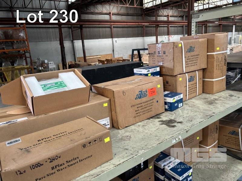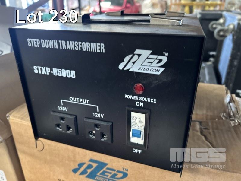 3 x POWER INVERTERS, 8 ZED, PURE SINE WAVE 4000w- 24V DC TO 240VAC, 1000w -12V DC TO 240VAC, 600w - 12V DC TO 120VAC, 3 x POWER TRANSFORMERS INCLUDING 5000w - 240V TO 120VAC, STEP DOWN 4000w - 120V TO 240VAC, STEP UP, 2000w - 120V TO 240VAC, STEP UP, 2 x 600w - 240V TO 120VAC, STEP DOWN, 4 x 100w - 240V TO 120VAC, STEP DOWN