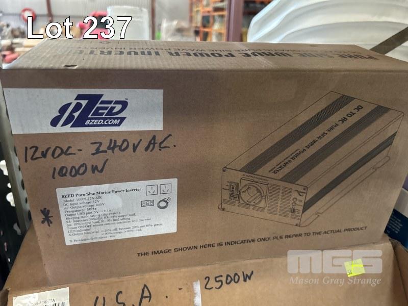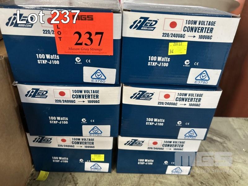 3 x POWER INVERTERS, 8 ZED, PURE SINE WAVE INCLUDING 2500w - 12V DC TO 120VAC 1000w -12V DC TO 240VAC 600w - 12V DC TO 120VAC & 6 x STEP DOWN POWER CONVERTERS, 240V TO 100VAC, 1000w AS NEW