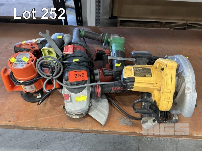 BOSCH GRINDER, 9", DEWALT SAW, 184mm, BLACK & DECKER 3.4HP ROUTER & HILTI IMPACT DRILL, ETC