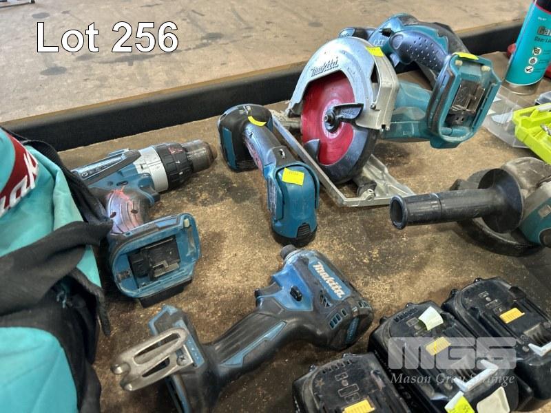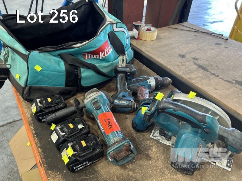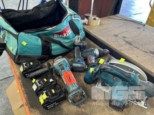MAKITA ANGLE GRINDER, TEK DRILL, DRILL SAW WITH BATTERY, NO CHARGER & CARRY BAG