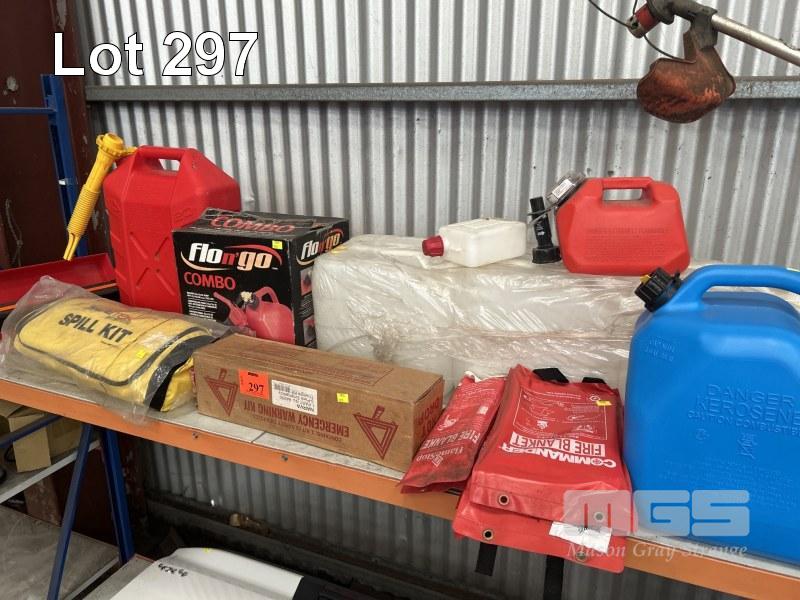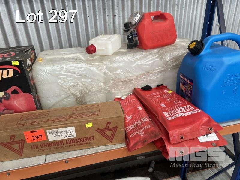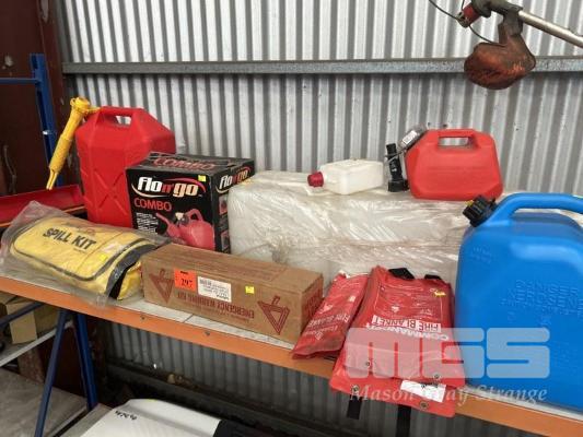 3 x 15 LITRE WATER CONTAINERS, (AS NEW) & 2 x FUEL JERRY CANS, 10 & 20 LITRE