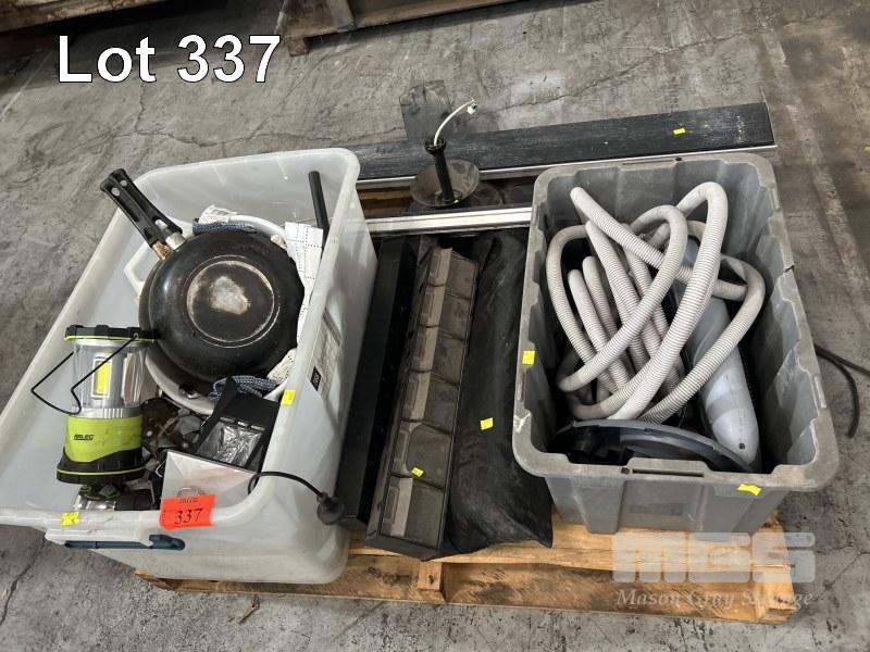 CAMPING GEAR INCLUDING POTS, PANS, TEST, GAS LIGHT, CEILING FAN, OUTDOOR HEATER,