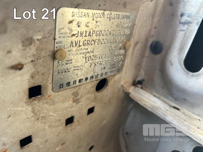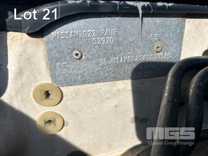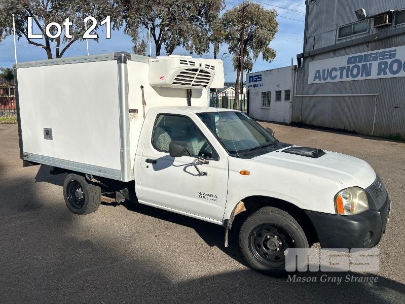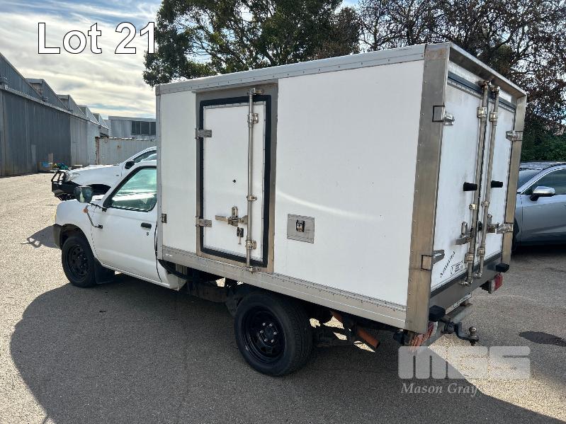 2008 NISSAN NAVARAQ DX-22 SINGLE CAB, REFRIGERATED BODY REG: S306 CWE VIN: JN1APGD22A0030180 ENG: YD25061700T ODO: 145,704kms SHOWING 2.5 LITRE TURBO DIESEL, 5 SPEED MANUAL TRANSMISSION, WHITE DUCO, 2 DOORS, 3 SEAT, AIR BAG, AIR CON, CD PLAYER, POWER STEERING, SPARE WHEEL, TOW BAR, FREEZER BODY FITTED WITH INGERSOLL-RAND THERMO KING REFRIGERATION SYSTEM DUAL REAR & SINGLE SIDE DOOR ACCESS KEY #4 (WITH PAPERS, WITH 1 KEY/S, WITH OWNER'S MANUAL)