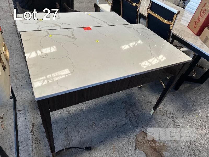 2 x ARTIFICIAL STONE TOP TABLES 1x 1200 x 700 x 800mm (H), 2 DRAWS 1x 1200 x 400 x 730mm (H)