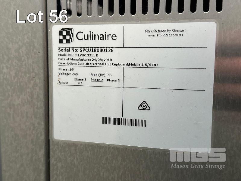 VERTICAL HOT CABINET, CULINAIRE MOD: CHVHC3211E DOM: 2018 6 TIER 240V, 10 AMP