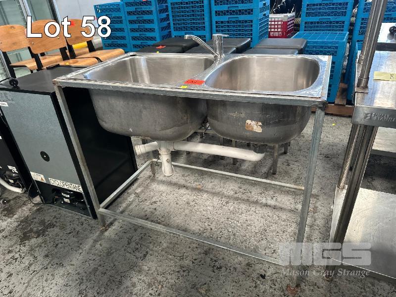 TWIN BOWL STAINLESS STEEL SINK GALV FRAME, 1110 x 590mm