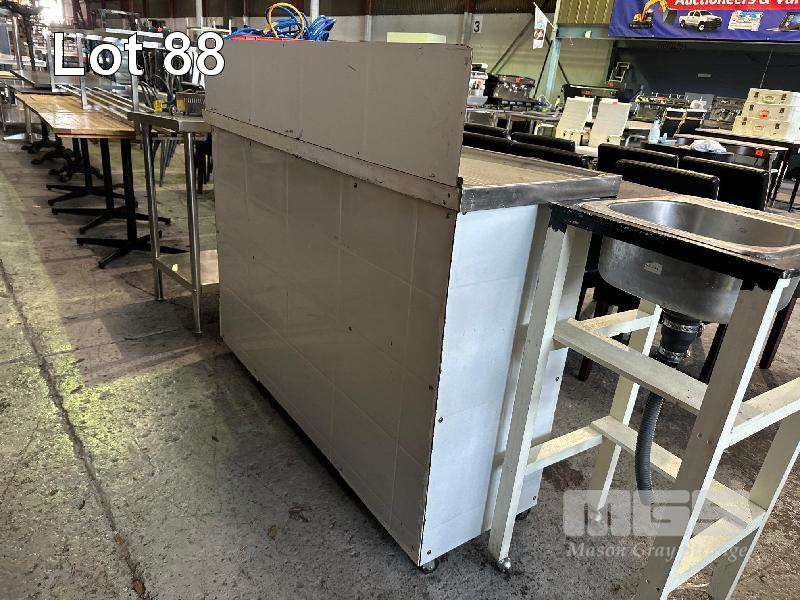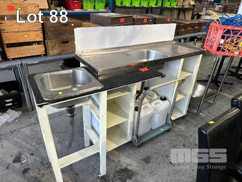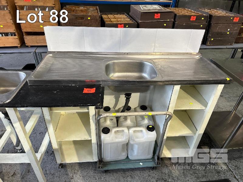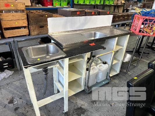STAINLESS STEEL SINK ON MOBILE TIMBER BASE, 1300 x 460 x 970mm (H)