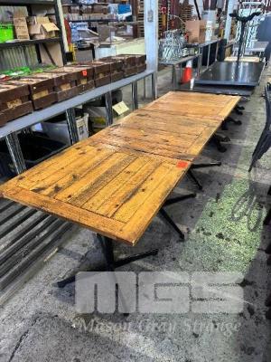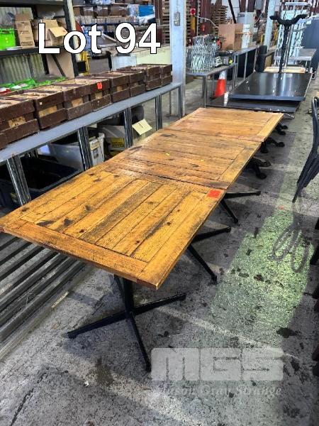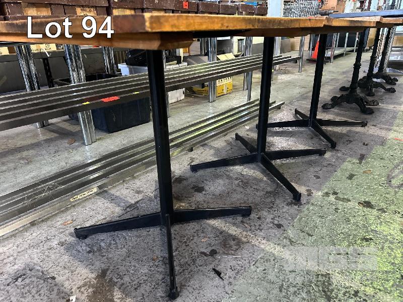 3 x CAFE TABLES, 2 @ 760 x 760mm & 1 @ 760 x 700mm, TIMBER TOP