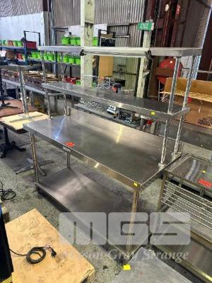 STAINLESS STEEL BENCH, 1500 x 600 x 1660mm, 2 TIER WITH 2 TIER SHELF