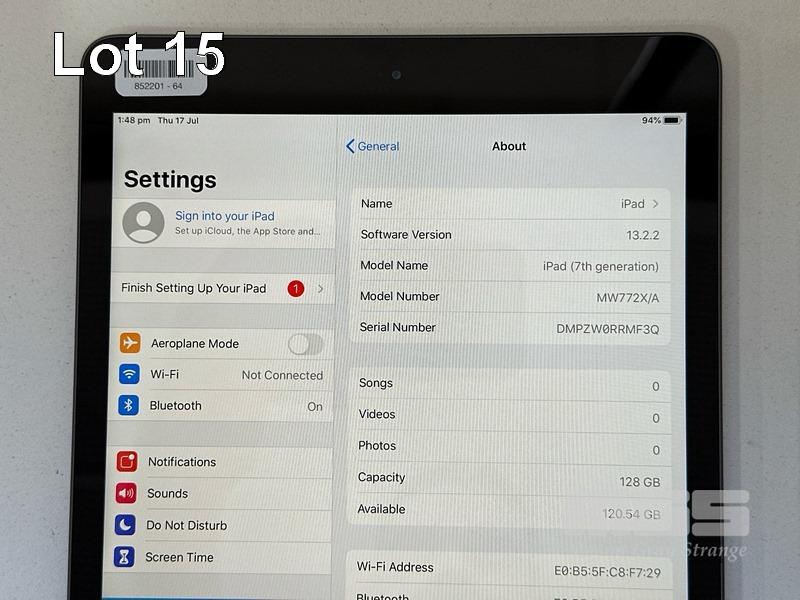 APPLE iPAD 7TH GEN, 128GB, Wi-Fi, SPACE GREY, MODEL MW772X/A, A2197 WITH CABLE & CHARGER S/N:DMPZW0RRMF3Q