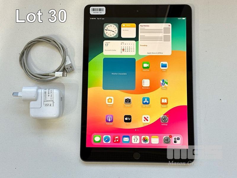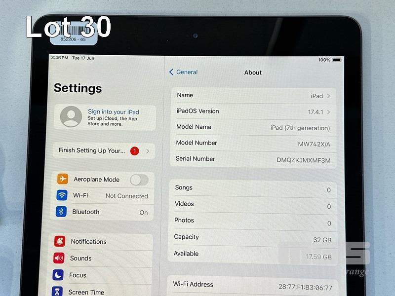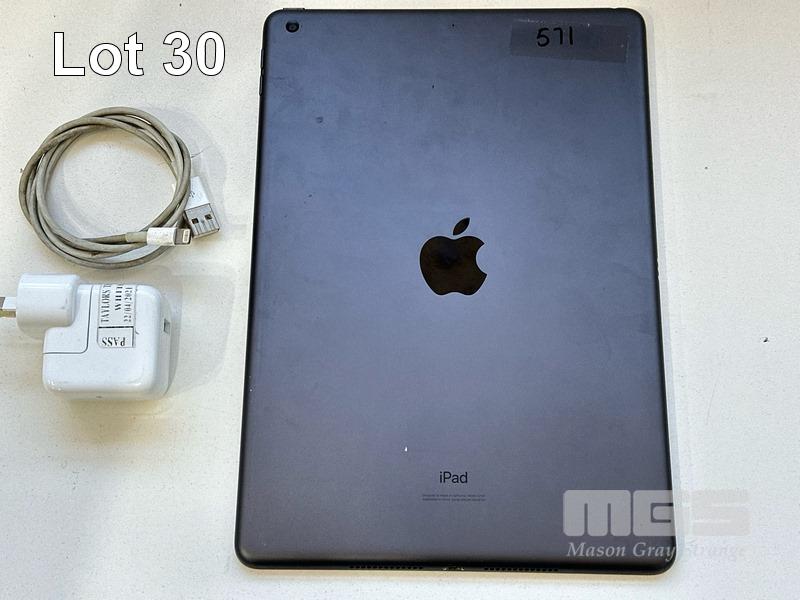 APPLE iPAD 7TH GEN, 32GB, Wi-Fi, SPACE GREY, MODEL MW742X/A, A2197 WITH CABLE & CHARGER (NOTE: MINOR SCRATCHES ON SCREEN) S/N:DMQZKJMXMF3M