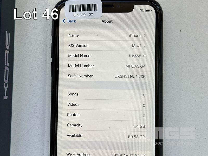APPLE iPHONE 11, 64GB, MODEL MHDA3X/A, A2221, BLACK, BATTERY HEALTH 85% WITH CASE (NO CABLE, NO CHARGER) S/N:DX3H3TNUN735