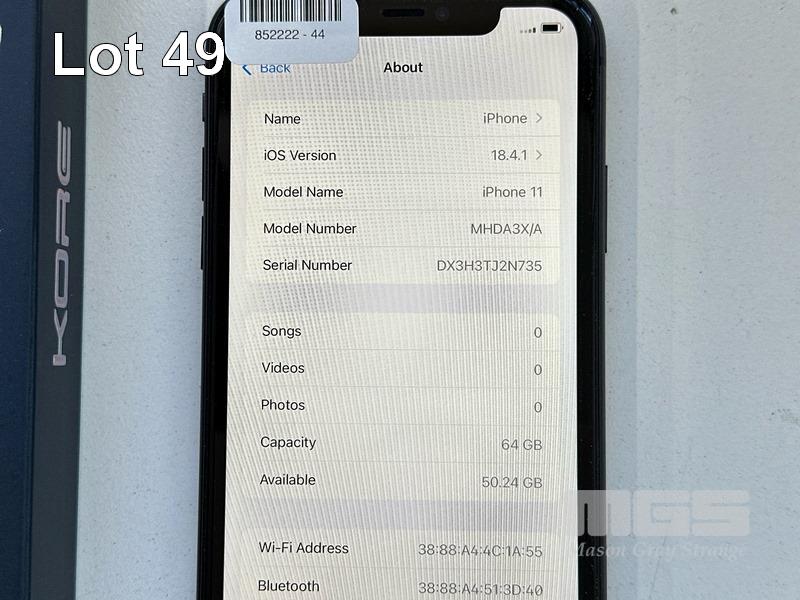 APPLE iPHONE 11, 64GB, MODEL MHDA3X/A, A2221, BLACK, BATTERY HEALTH 85% WITH CASE (NO CABLE, NO CHARGER) S/N:DX3H3TJ2N735
