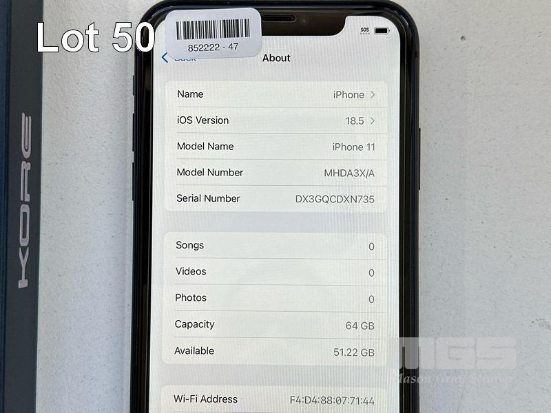 APPLE iPHONE 11, 64GB, MODEL MHDA3X/A, A2221, BLACK, BATTERY HEALTH 85% WITH CASE (NO CABLE, NO CHARGER) S/N:DX3GQCDXN735