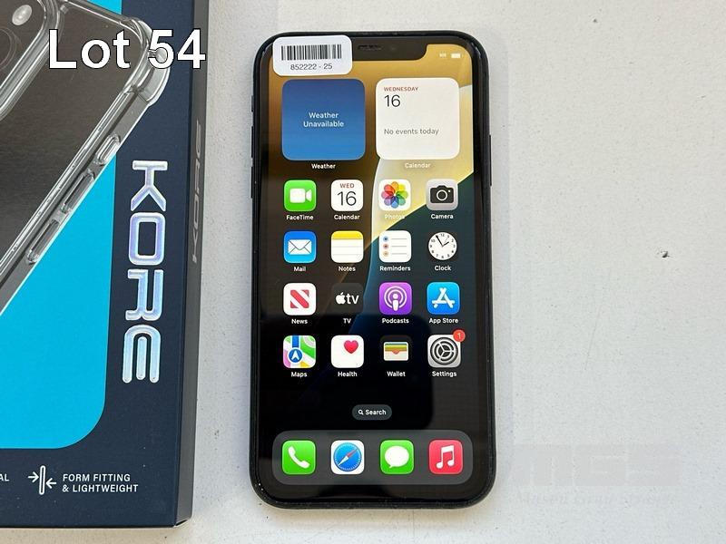APPLE iPHONE 11, 64GB, MODEL MHDA3X/A, A2221, BLACK, BATTERY HEALTH 82% WITH CASE (NO CABLE, NO CHARGER) S/N:DX4GN7P5N735