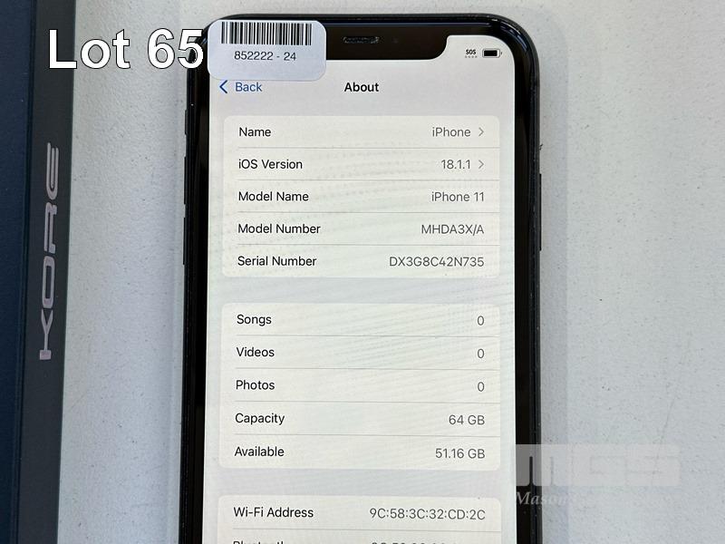 APPLE iPHONE 11, 64GB, MODEL MHDA3X/A, A2221, BLACK, BATTERY HEALTH 80% WITH CASE (NO CABLE, NO CHARGER) S/N:DX3G8C42N735