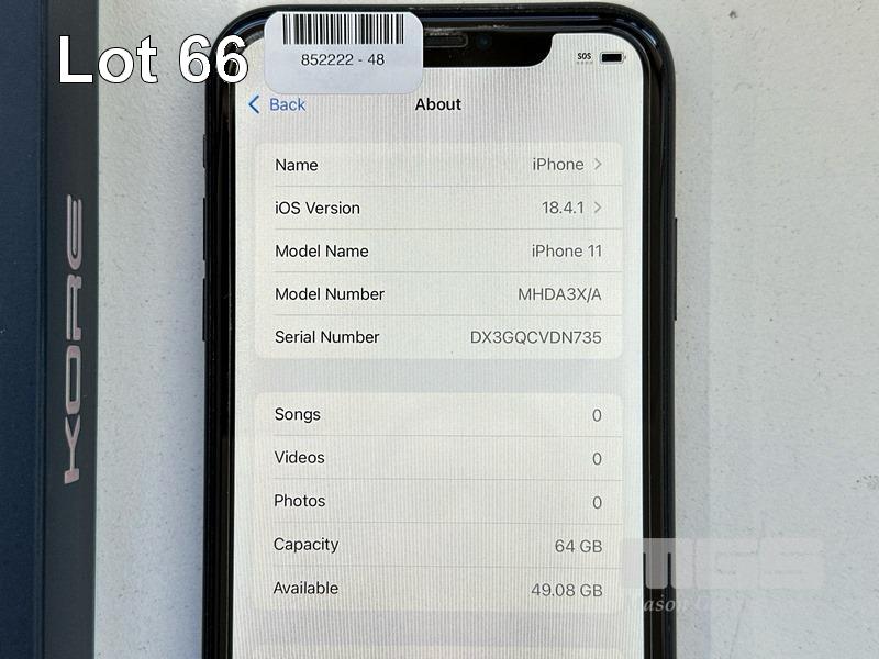APPLE iPHONE 11, 64GB, MODEL MHDA3X/A, A2221, BLACK, BATTERY HEALTH 80% WITH CASE (NO CABLE, NO CHARGER) S/N:DX3GQCVDN735