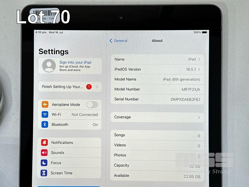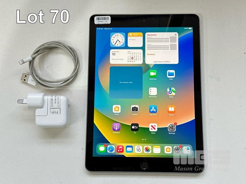 APPLE iPAD 6TH GEN, 32GB, Wi-Fi, SPACE GREY, MODEL MR7F2X/A, A1893 WITH CABLE & CHARGER (NOTE: MINOR SCRATCHES ON SCREEN) S/N:DMPXDAEBJF8J