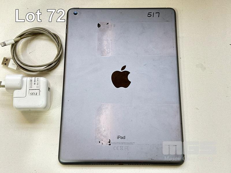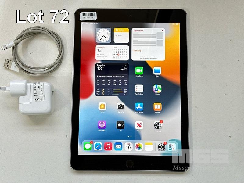 APPLE iPAD 6TH GEN, 32GB, Wi-Fi, SPACE GREY, MODEL MR7F2X/A, A1893 WITH CABLE & CHARGER (NOTE: TOUCH ID FAULT, MINOR SCRATCHES ON SCREEN) S/N:DMPXDKFKJF8J