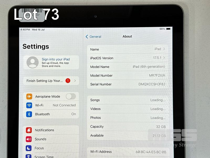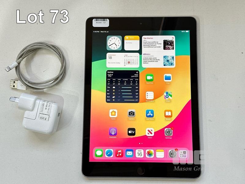 APPLE iPAD 6TH GEN, 32GB, Wi-Fi, SPACE GREY, MODEL MR7F2X/A, A1893 WITH CABLE & CHARGER (NOTE: MINOR SCRATCHES ON SCREEN) S/N:DMQXCCSHJF8J