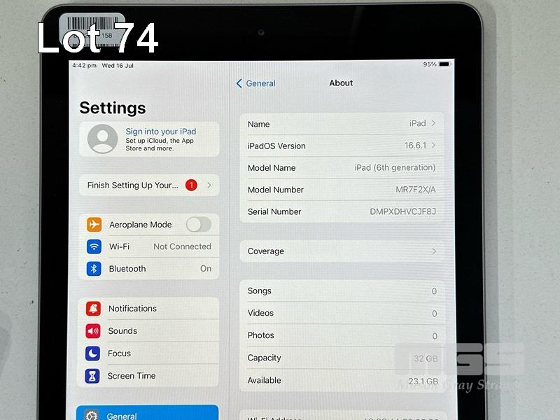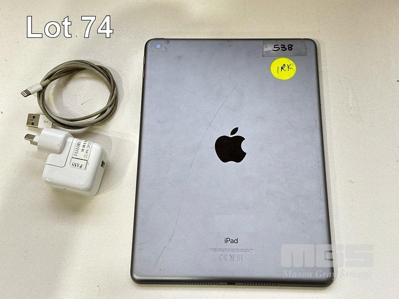 APPLE iPAD 6TH GEN, 32GB, Wi-Fi, SPACE GREY, MODEL MR7F2X/A, A1893 WITH CABLE & CHARGER (NOTE: MINOR SCRATCHES ON SCREEN) S/N:DMPXDHVCJF8J